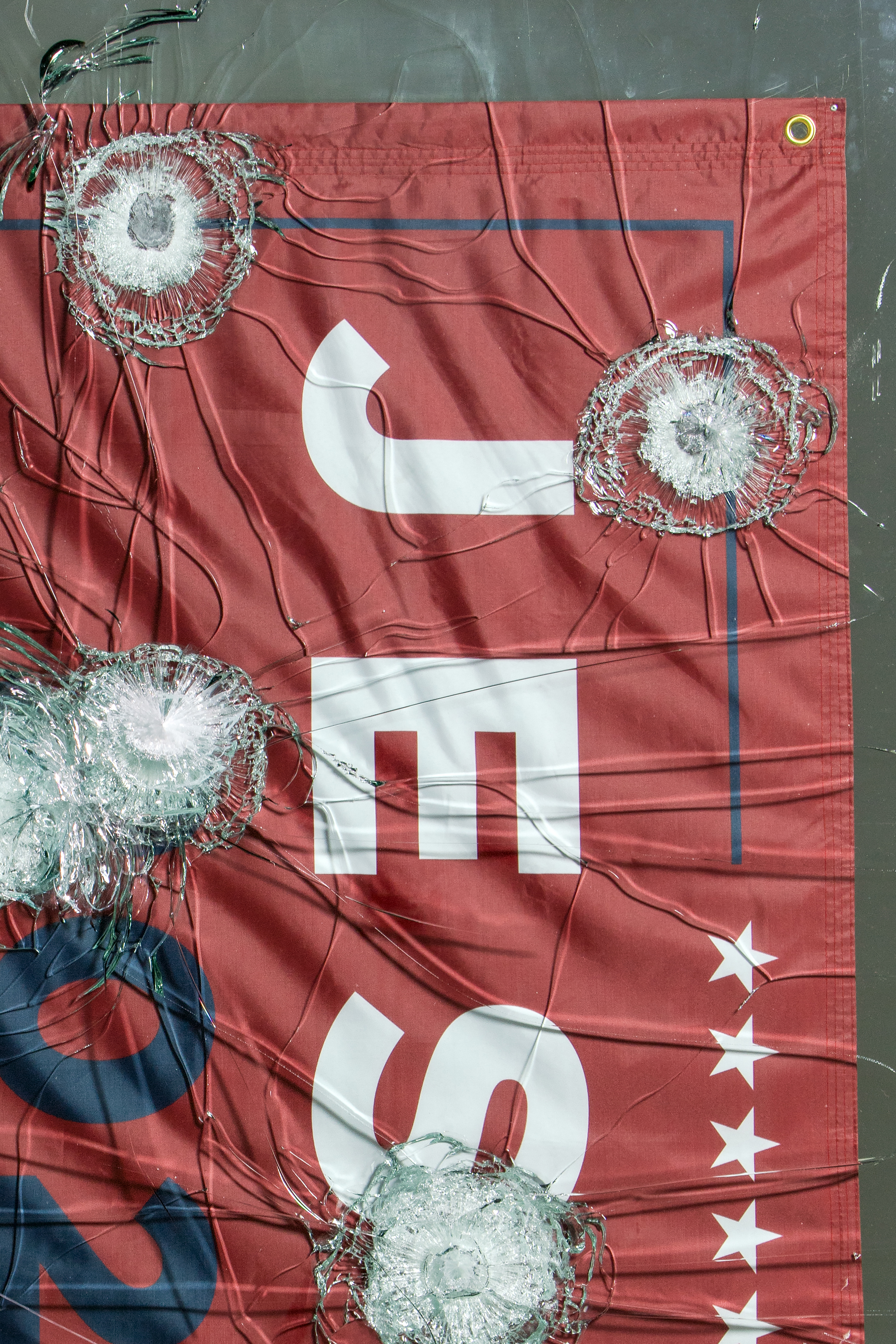 Nylon flag, Level-7 bulletproof glass, Steel, .223 ammunition